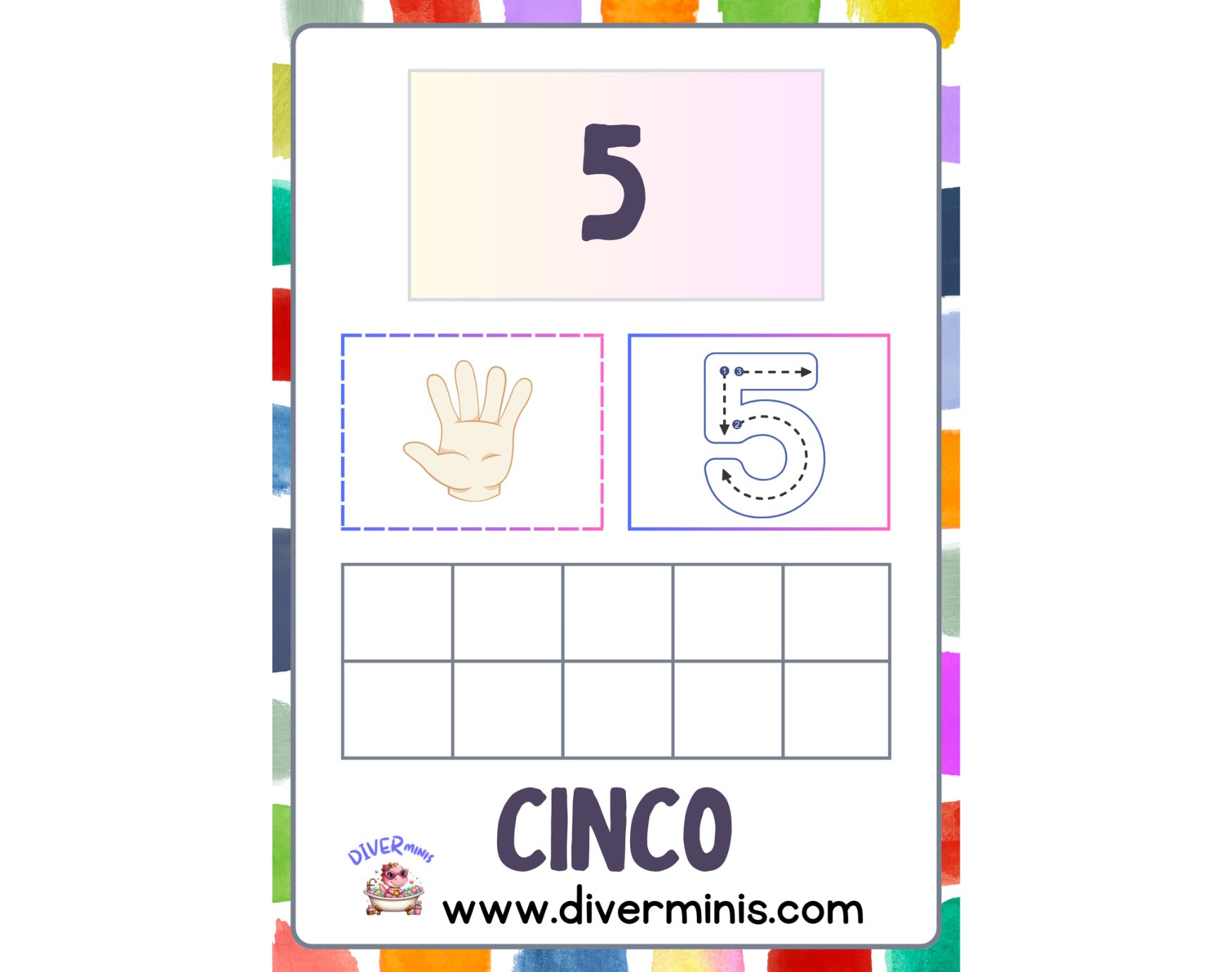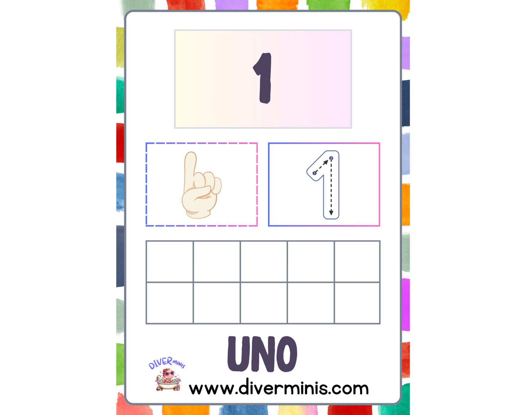 - Una casilla de trazo para que los niños practiquen escribir el número.