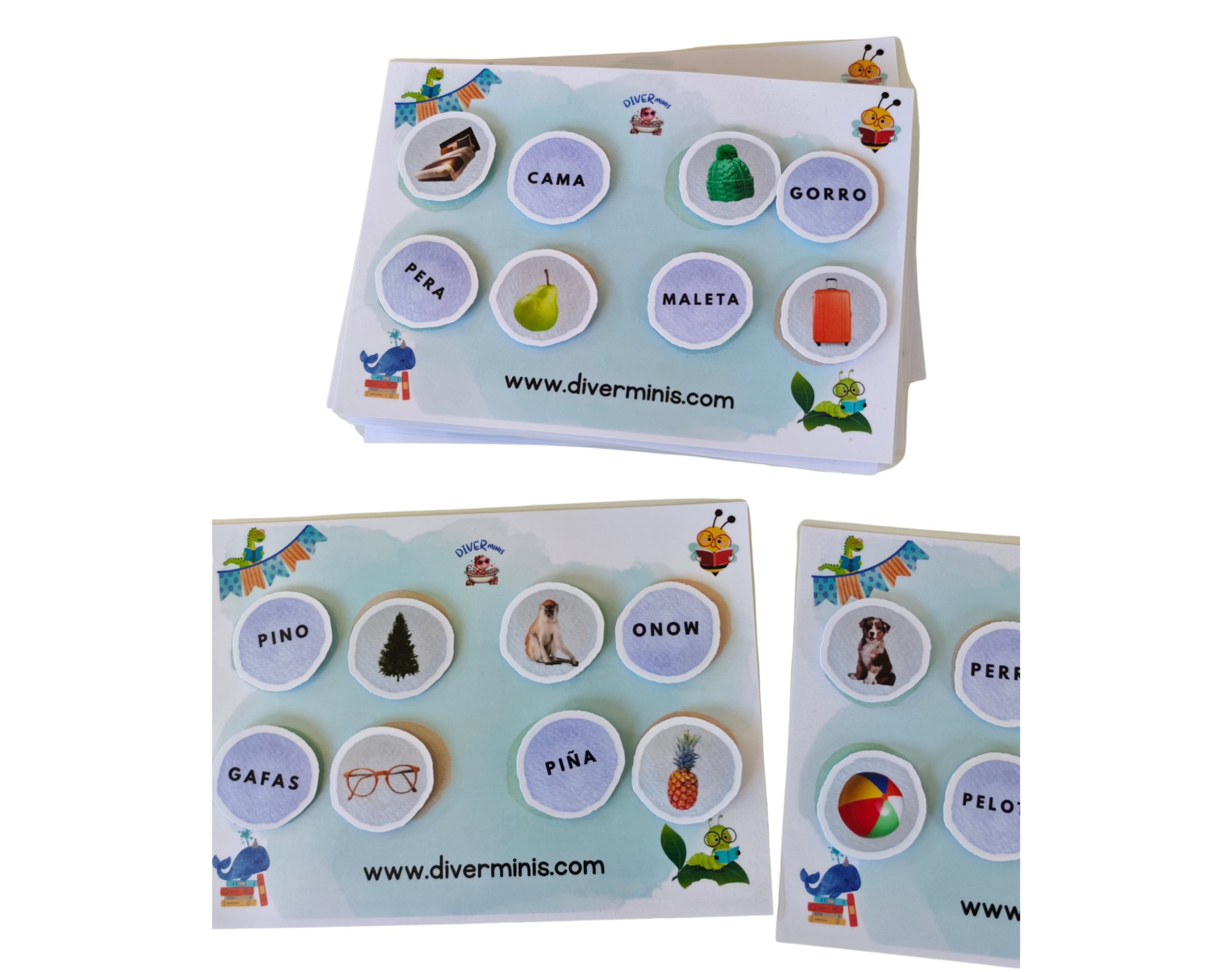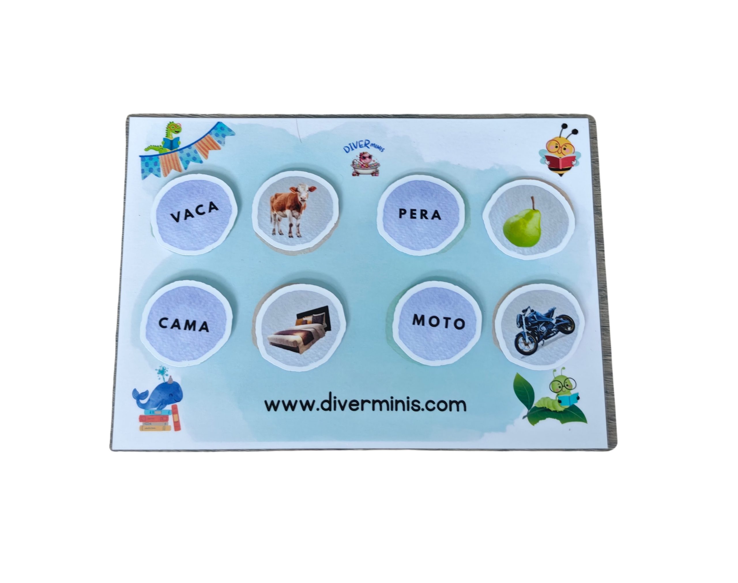 ✔️ Incluye: 8 tarjetas con palabras como jirafa, casa, pato, muñeca…