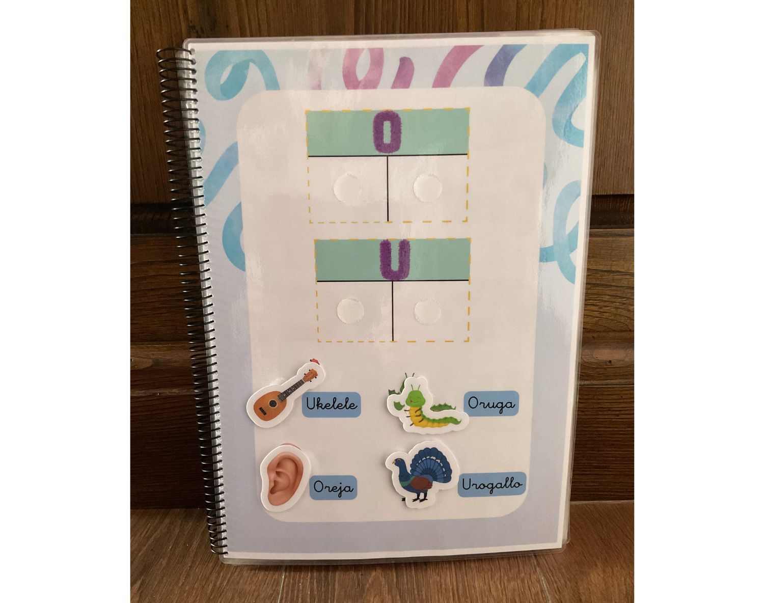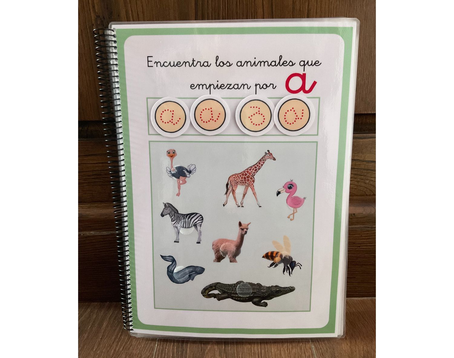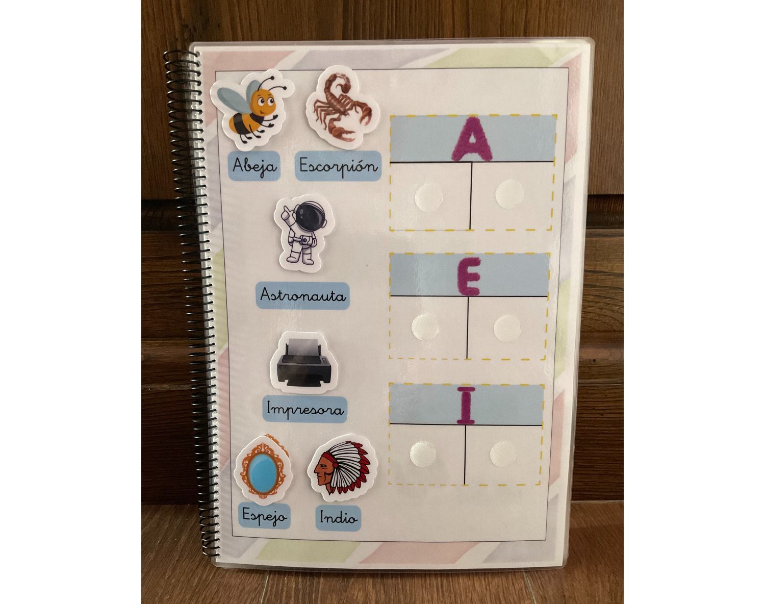 En él, primeramente, les presentaremos todas las vocales para que se familiaricen con ellas. En las siguientes páginas, deberán relacionar cada vocal con imágenes, animales o cosas que empiezan por esa vocal.